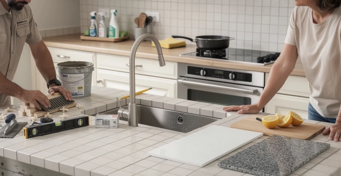 La durabilité et l’entretien d’un plan de travail carrelé au quotidien